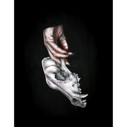 A pale animal skull dangles from long, sharp claws - a symbol of mortality, power, and the dark elegance of the gothic aesthetic.